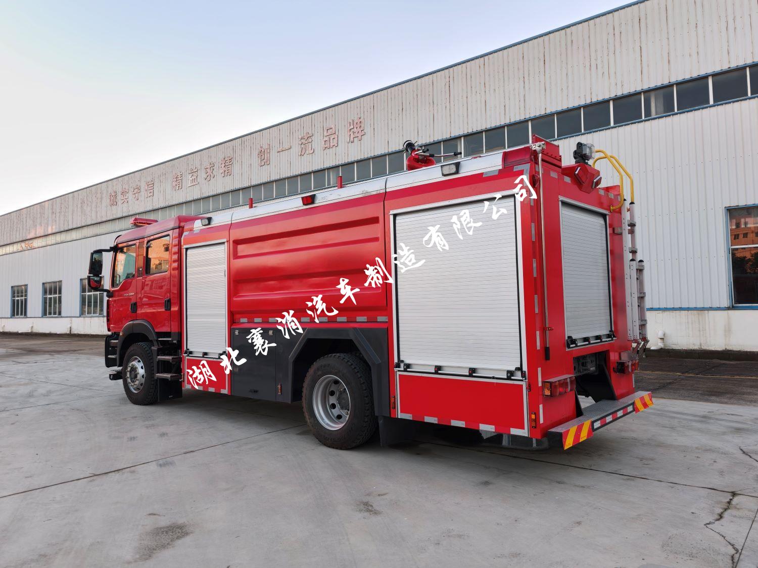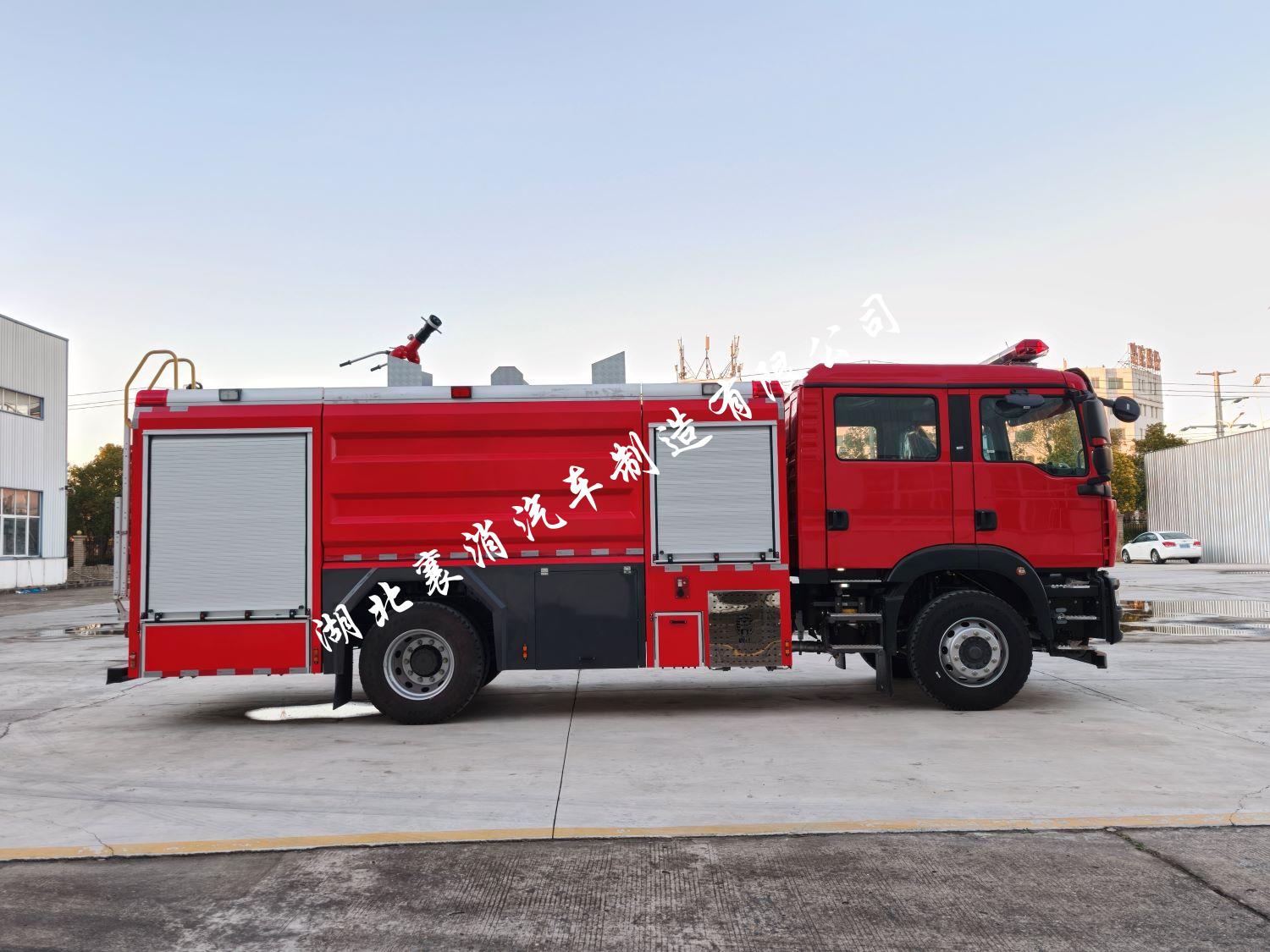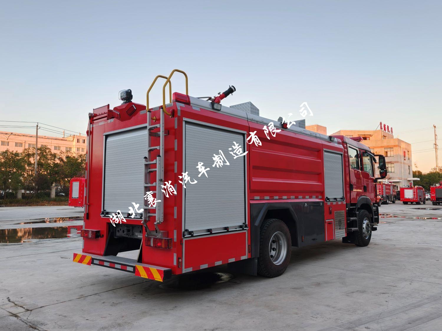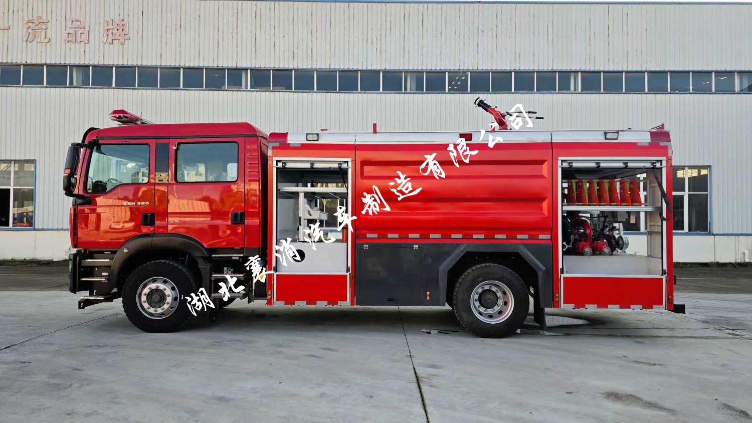 | 重汽汕德卡8吨水罐消防车采用中国重汽集团济南卡车股份有限公司生产的二类底盘ZZ5206N471GF5基础上改装而成,4×2驱动,MC07H.35-60国Ⅵ排放350马力发动机,原装双排驾驶室,乘坐2+4人(含驾驶员),车身前部为器材箱,中部为罐体,后部为泵房。装备CB10/60型大流量消防泵,PS60型消防水炮。 整车动力性能好,载水量大,持续作战能力强,技术性能处于国内领先水平,是消防救援体系中的“主力攻坚装备”,以大储水量、强喷射能力和持续作战优势,承担大型火灾扑救、远距离供水及复杂环境攻坚任务,是城市主战、跨区域增援的核心力量。 | |