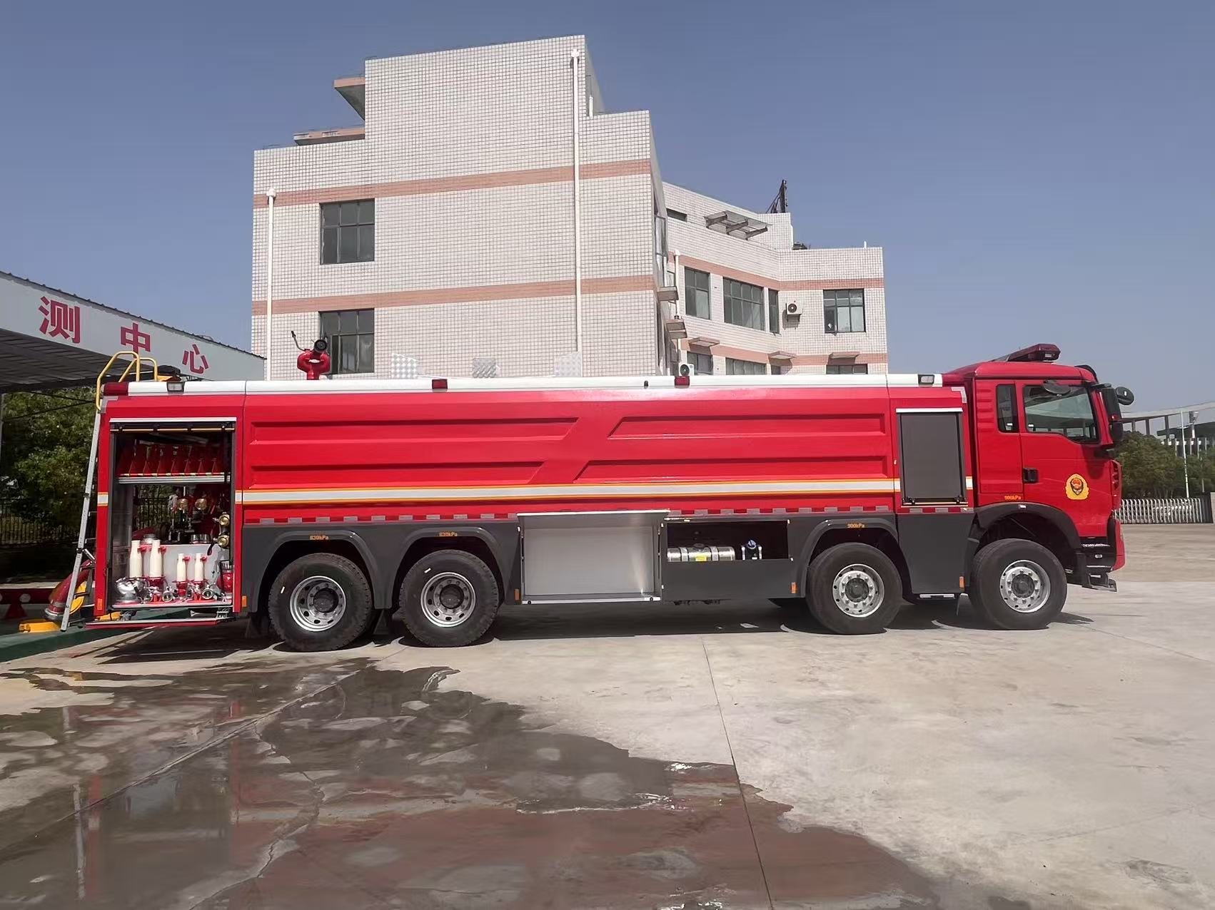 车辆基础配置需匹配场景强度。发动机功率方面,社区消防车≥160马力即可满足需求;工业场景则需≥240马力,确保满载5吨灭火剂时爬坡能力≥30%。轴距长度需与作业场景匹配,住宅区域宜选3.8-4.2米短轴距,化工园区可选用4.5-5.0米长轴距以提升装载量。